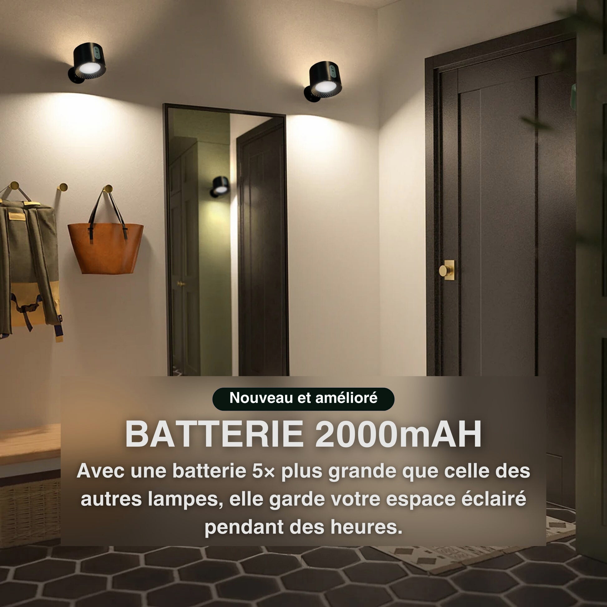 Avec sa puissante batterie de 2000mAh c'est cinq fois la capacité de la plupart des lampes, Dotia peux garder votre entrée éclairée pendant pendant des heures. Et si une prise est à proximité, vous pouvez simplement le laisser branché et oublier complètement la recharge.