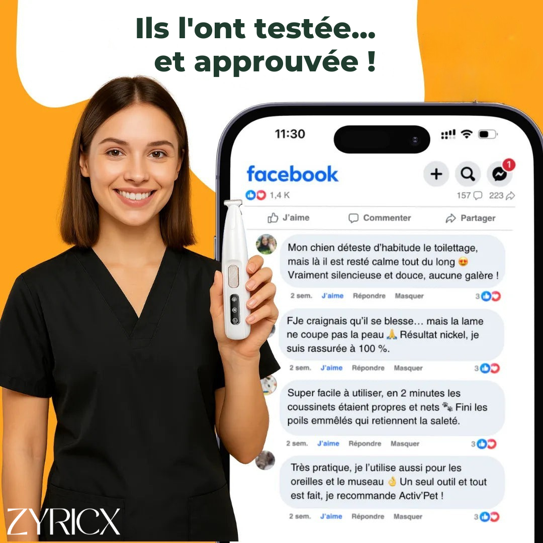 Plus de 20 000 maîtres satisfaits font confiance au soin sûr et doux de la tondeuse à pattes ZYRICX.